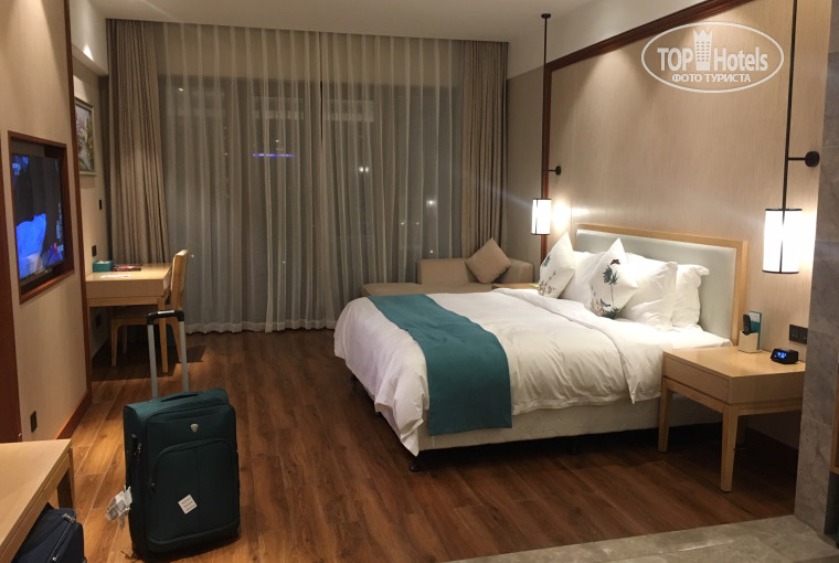 Отель ШИКАРНЫЙ! Месторасположение ИДЕАЛЬНОЕ! Депозит $100 или 500 юань. При заселении попросили через гида номер с двуспальной кроватью, дали шоколадку – просьбу выполнили без проблем. Номер на 21 этаже, вид – огонь! Номер 48 кв.м. Невероятно удобная кровать и подушки, уютное одеяло, белоснежное белье. Все новое, в номере: холодильник (в нем спрайт, кола, пиво – платно), 2 бутылочки воды, чайник, чай/кофе/сахар, шампунь, гель, кондиционер, лосьон, шапочка для душа, набор пилочка-ватный диск, ватные палочки – каждый день все пополняется, зубные щетки с пастой, тапки домашние (меняют каждый день) и пляжные шлепки, халаты, пляжные сумки, утюг, доска, фен, белоснежные мягкие полотенца 7 шт на двоих (меняют каждый день) + пляжные (меняют по непонятной логике), часы-будильник, и т.д. В общем есть ВСЕ, и все новое! В телевизоре 2 русских канала – узнали в последний день)) На балконе удобная сушилка, резной стол и кресла. Wi-fi бесплатный везде и в номере, то шустрый то тормозит. Гиды каждый день сидят внизу в отеле до 18 часов.