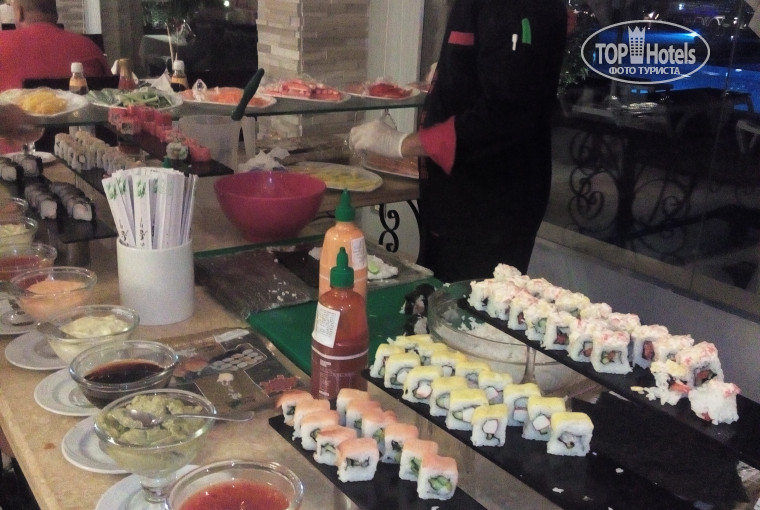 Это отдельная тема. Каждый год приезжаем в отель и каждый год шеф-повар радует новыми блюдами. Всегда в достаточном количестве курицы в разных исполнениях: жаренная, вареная (для тех, кто соблюдает диету или занимается спортом), тушеная; говядина, печень, разные виды рыбы: форель, семга, креветки и другие море продукты (по утрам рулетики из копченого лосося со сливочным сыром и овощами). Два раза в неделю проходят рыбные дни по вечерам (насчитали 7 видов рыбы), а по понедельникам есть суши бар, где при тебе сушист готовит роллы и суши (правда немного суховаты, ничего особенного). Блюда очень разнообразные как местной, так и европейской кухни и даже русской;))). Бывают вкусные супы и бульоны. Фрукты в достаточном количестве каждый день: арбуз, манго, груши, яблоки (целые, а не порезаные кусочками в чашах с сиропом), гуава, персики, гранат, апельсины, мандарины, бананы, инжир, финики, виноград и сухофрукты. Овощей так же большое разнообразие. В автоматах соки с мякотью из пакетов (кстати на пляже соки подают из пакетов тоже, мой любимый сок из гуавы) , в этом году поставили новый автомат с NessTea. Все ооооооочень вкусно. Персонал ресторанов очень отзывчивый и внимательный. Чисто, комфортно, уютно.