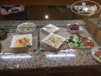 А что касается еды - все очень вкусно, очень ассортиментно, красиво сервировано, все закуски регулярно пополняются. Завтрак, как и заявлено - полноценный и обильный шведский стол. Одних только каш - 4 наименования. Соки, йогурты, выпечка, блинчики, мюсли, творожная запеканка, яйца во всех возможных видах, сосиски и горячая колбаса. 2-3 вида горячих гарниров, салаты, нарезки колбас и сыров, маслины, оливки, нарезки свежих овощей - до самого ужина есть после такого стола не хотелось. Фото этих "гастрономических праздников" прилагаю.
