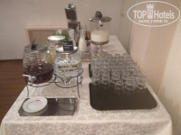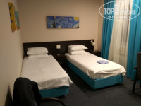 Бронировали семейный номер "гранд люкс", который оказался дешевле двух двухместных стандартов. Описывать его интерьер нет необходимости - все можно видеть на сайте. Великолепный трехкомнатный номер на втором этаже с хорошим ремонтом, новой мебелью и небольшим балкончиком. Окна в тихий двор: мы спали с открытыми. Хорошая звукоизоляция - даже работающий телевизор в смежной спальне вообще не было слышно. Удобные постели, по две больших подушки на каждого, белоснежное постельное белье и полотенца по 3 штуки на гостя. Полный набор чашек, ложек, стаканов, фужеров + чайник. Тапочки и халаты для всех гостей. По бутылочке питьевой воды при заезде в мини-баре. Дальше - кулер на этаже, правда, не очень близко, т.к. наш номер был в самом конце длинного коридора.