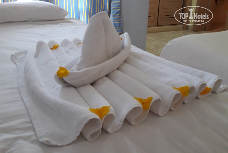 Доброго времени суток. Отдыхали семьей из 3-х человек (2 взрослых и ребенок 11 лет) в ROYAL LAGOONS AQUA PARK 5* c 26.10.2018 г. по 09.11.2018 г., туроператор Tez Tour . Путевка 14 ночей, все включено, нам обошлась в 37 000 рублей (570 долларов), без перелета. Стоимость перелета на троих туда – обратно 41000 рублей (630 долларов), покупали у финского туроператора Tui. Вылет из Хельсинки в 08.30 датским чартером Jet Time. Билеты на автобус «Люкс Экспресс» Санкт-Петербург –Хельсинки - Санкт-Петербург нам обошлись 6000 рублей (90 долларов) на всех. В цену входит интернет, кофе, чай, вода, индивидуальная видеомедиасистема. Автобус делает остановку в аэропорту, напротив терминала Т2, из которого был вылет и прилет. Отправление и прибытие без опозданий и туда и обратно. Автобусам Люкс Экспресс 5++++. Трансфер до отеля и обратно на такси (5 долларов в каждую сторону), обратный перелет - все хорошо, претензий никаких нет. С Jet Time летали первый раз, немного переживали, но все прошло замечательно. По уровню сервиса можно поставить авиаперевозчику твердую 5. Самолеты Боинг-737 не новые, но в хорошем состоянии, без бизнес класса. Достаточно просторные. В полете еда и все напитки только за деньги, даже вода (3 евро за 0,5 л). Прилетели в аэропорт Хургады около 13.00 по Египту. Международный аэропорт Хургады новый (запущен год назад), по прилету есть небольшой дюти фри, цены нормальные. Заплатили 75 долларов за визы, быстро прошли паспортный контроль. Так как сумки в багаж не сдавали - сразу на такси. Расстояние от аэропорта до отеля примерно 5 км, на такси 7-10 минут. В отель приехали около 14.00. Отель состоит из основного корпуса, 2 трехэтажных корпусов и нескольких 2-3 этажных коттеджей расположенных по периметру отеля. Внутри большая территория с садом, бассейнами и аквапарком. На рецепшене быстро забрали ваучер, надели браслеты и отправили на обед. Сразу же отвлекусь на питание. Ресторан – египецкая стандартная столовая без особых изысков. Набор еды тоже, как всегда самый банальный. Деликатесов никаких нет, но что покушать вы всегда найдете и голодными не останетесь. Мясо, рыба, курица всегда присутствовали, без ограничений и без выдачи по кусочку. На завтраках есть небольшие очереди за глазуньей, омлетом и блинами. Свежие овощи отдельно и в салатах в достаточном количестве. Фрукты – сливы, апельсины, бананы, гранаты, яблоки и лимон. В случае окончания все блюда пополнялись довольно быстро. С посудой и столовыми принадлежностями проблем не было. Большой выбор десертов хорошего качества. Напитки юппи или инвайт на завтрак, обед и ужин. Алкоголь в стеклянной посуде, только обед и ужин. Официанты хоть и есть, но разносом напитков не занимаются, крутятся возле евротуристов за чаевые. Чай и кофе всегда присутствовали, как на завтраках, так и на обеде и ужине, и постоянно можно попить в лобби баре с 10.00 до 23.00. После обеда с 15.00 до 17.00 в баре рядом с бассейнами были десерты. Мороженого нет. На ужин на улице у столовой жарили мясо, рыбу или что – нибудь другое. За питание я бы поставил твердую 4. После обеда, в 14.40 пошли на рецепшен заселяться. У нас был забронирован стандарт на 3-х человек. Денег не давали. Получили ключи от номера 5007. Замки в дверях номеров открываются магнитными картами. Пришли в номер, осмотрелись. Номер на 3 этаже отдельного коттеджа, рядом с выходом из отеля на улицу с магазинами и лавками. Большая прихожая 12 -15 м2. В прихож