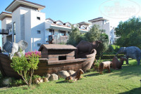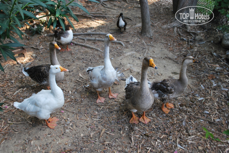 Прекрасная, ухоженная, зелёная территория отеля, растут бананы и гранаты. Мини зоопарк, лошади, пеликаны, попугаи, фламинго, утки. Кого-то можно потрогать, кого-то покормить, очень здорово. Отличные променадные дорожки, тренажёрные площадки, есть где погулять.