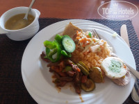 Шеф-повар реально заморачивается как и что подать людям. Если рыба то одна жареная, другая запечённая, третья в кляре. Мясо не просто жаренное а шашлыком или стейк. Очень вкусные перепела. Шеф - молодец.
