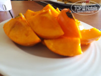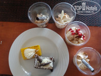 Завтрак: вареные яйца, омлет микс, блинчики, картоха, сыры, масла, много булочек и сладостей, чай, кофе, кукурузные хлопья (простые и шоколадные), молоко, йогурты; фрукты: бананы, гранат, финики, апельсины, хурма, гуава, дыня и т.д., много овощей и салатов.