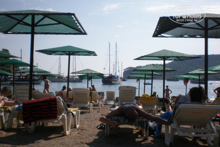 До моря метров 200 по дороге, по которой постоянно ездят авто-это пережить можно, но само море - отстой!!! Внешне представляет собой "бухточку", всю изгаженную машинным маслом и рядом находится причал для катеров! Ужасссс!!! У меня после таких "морских ванн" волосы вылазили месяца 3 после отпуска=( Вот это самый главный минус! Можно ходить в соседние отели и за отдельную плату пользоваться их пляжем. Но по жаре не очень-то хочется ходить. Питание в отеле нормальное, было много фруктов - арбузы, яблоки, вкусный виноград каждый день. В номере душно, сплит система допотопная, гоняет по комнате теплый воздух. Приходилось открывать балкон. Анимация каждый день с одним выходным. Рядом с отелем дискотека. Вход 10 долларов и обязательно нужно обязательно что-то заказать (пиво 0.3 тоже 10 долларов стоит). Музыка современная, народу много, в общем есть где скоротать вечерок. До центральной улицы Кемера можно добраться пешком, идти минут 20-30. Магазинов много, но цены такие же , как в Москве. Перед тем, как заказывать экскурсии, сначала разведайте обстановку в округе, может найдете дешевле. Мы с подругой сдуру в первый же день по приезду пошли в отеле в турецкую баню. заплатили 50 долларов, а под конец отдыха выяснили, что в нескольких сотнях метров в другом отеле можно такие же процедуры (массаж, пиллинг и маски) принять за 15-20 долларов. Впечатление об отдыхе было испорчено качеством морской воды - грязно и противно((( Если главный критерий отбора отеля - это море - не берите путевку в этот отель!