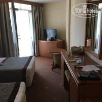 Отдыхали с подругой в начале мая, отель точно не пятерка, тройка максимум, мебель старая номера тоже, так бы и писали 3* а то как то в начале даже подрастроились, ожидание с реальностью не совпало. В номере убирали редко и то как убирали меняли в туалете мусорный мешок, и пополняли мини бар, полотенца пока я сама не попросила поменять так бы и не поменяли. Тапочек нам очень не хватало, в ванной комнате пол не протирали приходилось самим мыть, т.к. мы голыми ногами по полу ходили. Тюль в номере была отвратительная в каких то страшных пятнах, но мы на это все глаза закрыли. Вид с балкона был шикарный, на горы.