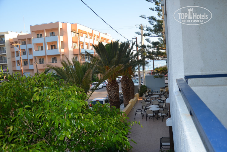 Что было в номере у нас: Холодильник, фен, кухонный уголок, чайник, шкаф с достаточным количеством вешалок, 3 тумбочки, большой балкон, на нем столик и 2 стульчика. Вся электроника, сантехника рабочая. Уборка отличная, даже балкон, но мы кровати сами застелали, а приходили вечером, грязнить некогда было. Вид не на бассейн, а на тихую дорогу, лефконико бэй справа и кусочек моря (на фото).