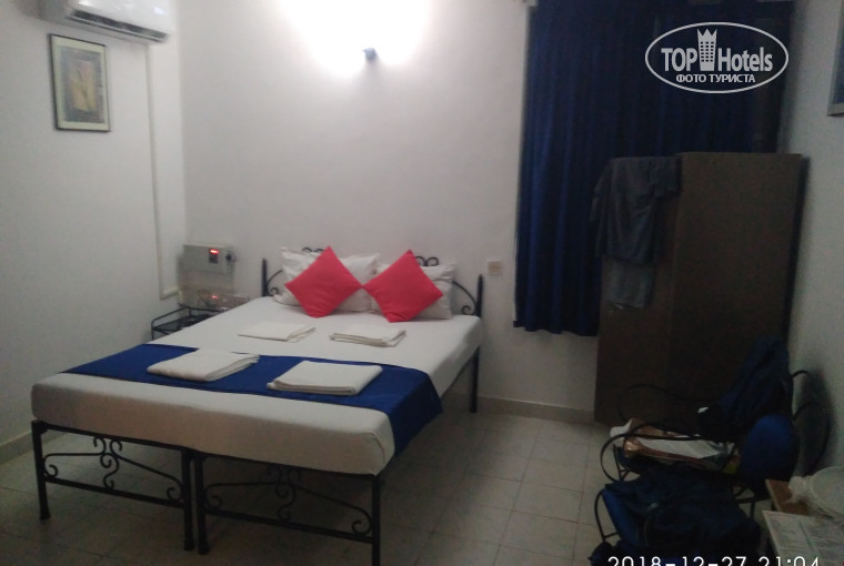 Приехал рано утром.Заселение сразу, сначала хотели поселить на первом этаже, за стойкой администрации. После отказа, без проблем показали другой номер на втором этаже, который устроил полностью. Предложили завтрак, хотя он не оплачен. Обычно это тосты, масло, джем, чай, кофе и какое-то одно блюдо. Сейф за стойкой администрации, лучше везите с собой замок небольшой, навесной. Воровства при мне в отеле не было. В номере был новый кондиционер, железный шкаф, кровать, холодильник , телевизор жк, но его не включал ни разу. Бельё постельное нормальное, без пятен и тому подобное. Вообще первое впечатление хорошее от отеля!+бесплатный вайфай в номере и на ресепшн. УБОРКА ПО ПРОСЬБЕ, ПРОСТО ОТДАЁТСЯ КЛЮЧ НА РЕСЕПШН И ПРОСИШЬ УБРАТЬ. Море не далеко, минут 10-15 спокойным шагом. На пляже в шейке (пляжные кафе) при заказе еды, напитков, бесплатно лежак и вайфай. Больше проводил время в Лайв Шейк, там работает русская девушка Маша, может помочь и вообще. Гид Ирина вполне адекватный человек, после отказа от экскурсий без проблем поставила печать . Агрессии с её стороны, как писали раньше, не было вообще. Разрекламированное кафе Рояль Релиш мне лично не понравилось, по ряду причин. Во первых отсутствует вайфай если вы мужчина!!! Девушкам старший официант раздаёт якобы свой, для меня интернета не было. Кухня там тоже так себе, ничего особенного. Да и вообще Индусы хотели бы, что к ним ездили отдыхать одни девушки без мужчин. Мне больше понравилось кафе Елина, там более чисто и санузел приличный. Рокки, администратор хороший парень, отлично говорит по русски. Если вы хотите спокойного отдыха, нужно ехать на Южный Гоа. Не многим понравится толпы пьяных глазеющих индусов. И море почище, цены не намного дороже. Вообще средний чек на еду мне обошёлся 500 рублей на раз поесть (было дешевле и дороже). Экскурсии лучше брать, чтобы были на автобусе, а не на минивэнах (тесно очень). Ехать долго обычно, поэтому обязательно уточните. ВНИМАТЕЛЬНО ПЕРЕСЧИТЫВАЙТЕ ДЕНЬГИ ПРИ ОБМЕНЕ, ОБЫЧНО ПЫТАЮТСЯ Со 100$ НА 1000 РУПИЙ ОБМАНУТЬ.!!!!! И ещё важная деталь, в пляжных шейках есть такая уловка : несколько меню с разными ценами ( типа иногда путают для индусов дороже, но не факт.) Просите меню на разных языках, сравнивайте!!!! В общем отдых понравился, возможно приеду ЕЩЁ!!!