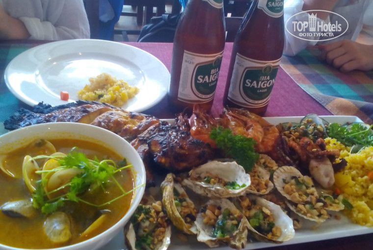 Отдыхали в отеле с 3 по 17 декабря 2018 года с внуками 6 и 10 лет. Отель очень классный, на уровне 5 звёзд. Нареканий нет ни каких. Персонал приветливый. Завтраки шикарные-постоянно идёт добавка заканчивающегося продукта. Как и во всех 4 и 5 на завтраках есть все. Предусмотрен даже второй зал, чуть поменьше, где в основном завтракают русские в тишине от китайцев. Китайцы очень горластые и беспокойные-от них там спокойно отдыхаешь за завтраком. Удобное расположение отеля. Первая линия, начало общественного пляжа, который охватывает половину городской черты. Обедали-ужинали чуть левее от входа в отель - кафе Москва. Там больше всех понравилось. Брали сет на 3 порции из морепродуктов. Его хватало на 4, и ещё детям добирались блинчики с бананом. Пробовали покушать где то на 2 или 3 линии, как вычитали из отзывов-оказалось цена та же, а качество ниже и намного грязнее. Рядом общественный транспорт. Такси стоят на каждом углу. Если придётся ещё раз побывать во Вьетнаме то поедем только в ред сан.