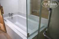 поразила просторная и достаточно современная ванна, не свойственная тайцам – плитка под европейский стиль, полноценная ванна с краном, душевая с хорошим душем…сантехника вся исправна, работала без перебоев и днем, и вечером; горячая вода была горячей, холодная холодной, не надо ждать по 10 минут, пока пойдет холодная. Немного попахивало, похоже канализацией, но это не напрягало, и запах был непостоянным, и только в ванной комнате. Между ванной и комнатой есть проем, который хорошо закрывается деревянной створкой.