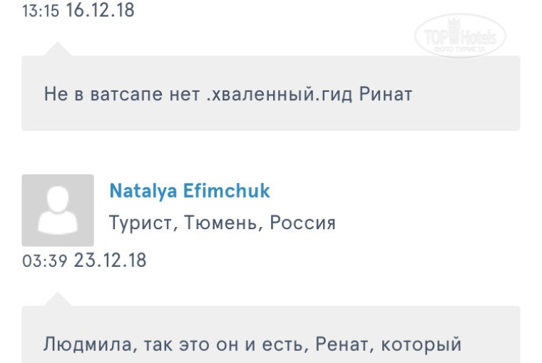 Трансфер и экскурсии.Трансфер мы не заказали потому что через интернет нашли частного гида,зовут Ринат.В отел он нам посоветовал поехать на такси. А экскурсии он нам обещал не забываемую которые мы не когда не забудем,Мы заказали поездку в Дубай за 150$ Но в день экскурсии за нами заехал не Ринат а какой то Джумшут представил себя гидам,мы в интернете читали про ОАЭ много чего и хотели получит еще больше информацию.Но спустя 10 минут мы поняли что нас обманули уже было поздно,мы особо даже не поняли куда мы поехали что мы видели,На заданные вопросы нами не получили достоверную информацию,в конце выяснилось что этот Ринат даже не Ринат и даже не какие не гиды,просто в интернете пишет отзывы и обманывает людей.Как он называет себя экскурсовод и фотограф,это все враньё.Люди вообще не доверяйте отзывам которые рекламирует таких людей.