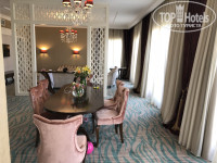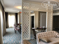Бронировал номер люкс 3 спальни + гостиная. Но по приезду Администрация сделала мне подарок повысив номер до максимального уровня - королевский Люкс. Номер на последнем 8 этаже, площадью 180 кВ.метров (3 спальни, гостиная , кухня) и огромная терраса с диванами, лежаками и столом со стульями площадью около 60 кВ.метров мебель в номере отличная. Обирали в номере 2 раза в день.