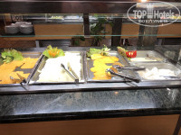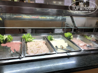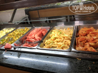 рыба ( туговат выбор вообще , как будто не рыбная страна) мясо , выбор сыров , выбор колбасы и ветчины, на ужин по выходных запекали хрюшку на вертеле, сыр с плесенью , иогурты на завтрак , мороженое , овсяная каша, какао, фрукты , картофельные оладьи( как хеш брауны) , типа сыр филадельфия, супчики скромные ( как и во всех отелях) рис, макароны, картошка , разные овощные салаты