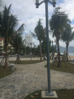 Пляж рядом, через дорогу, очень удобное расположение отеля. Путь лежит через проулочек, местные там утром и вечером кушают. Там бывает немного грязновато, но не более. Пляж чистый, вход пологий, волны были и приличные, и совсем их не было, так что купались осторожно с ребёнком. Накупались вдоволь. Очень много уличных тренажёров на набережной, местные и туристы на них с удовольствием занимаются, ещё бы! на свежем воздухе да на берегу моря. Очень много местных по вечерам, не хочется никого обижать, но ценные вещи не брали на пляж, либо под присмотром, при нас случаев воровства не было, хотя может мы и не в курсе.
