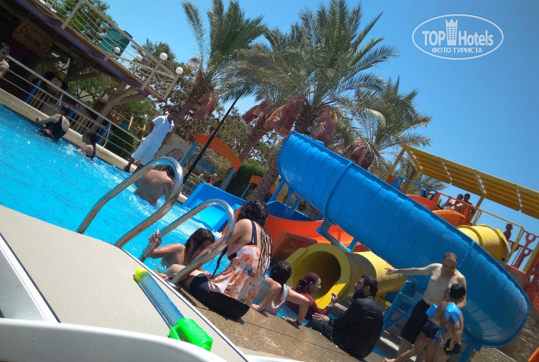 Небольшой отель,заселили сразу,т.к мы прилетели вечером то сразу и покормили.Сразу дали номер небольшой с двумя кроватями,после обращения, и соответственно доплаты, дали хороший номер с большим балконом.Убирали каждый день,оставляли доллар,полотенца и постельное меняли(я даже намечала что бы проверить))),воду приносили в номер.Кондиционер работал,вся сантехника тоже.Кормили неплохо,два основных ресторана, на втором этаже более пустой и мы всегда ходили туда.Три рестораны,рыбный, итальянский и ещё какой то ,можно посетить по одному разу за время отдыха.На пляже работает бар,можно перекусить даже.Так же бар около бассейна и ночной.С лежаками немного были проблемы,но тогда мы искали место у бассейна который находится около пляжа.Самих больших бассейнов два,есть три горки.Для деток там вообще рай,есть детский бассейн с декорациями(большой карабль и что то ещё)Заход в море хороший,есть понтон.