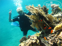Сразу хочу поблагодарить сотрудников отеля за прекрасное отношение к туристам. Такой тотальной доброжелательности персонала не встречали нигде. Теперь сначала. Тур заказывали в агентстве "Турляндия" в г. Запорожье {несанкционированная реклама; удалено модератором}. Настолько подробная информация, предоставленная сотрудниками агенства, очень помогла (путешествуем часто). Очень советуем агенство. Летели авиакомпанией "Азурэйр". Перелеты совершались вовремя, претензий нет, довольны, летели этой компанией впервые. По прилету встретили представители туроператора "анекс тур", все очень организовано. Трансфер быстрый, комфортный, информационноемкий. По приезду в отель нас встретили с улыбками и влажными полотенцами. Предложили заполнить анкеты в лобби, надели браслеты и отправили на завтрак приблизительно в 7.30 (бесплатно). Ждали поселения в номер (отремонтированный) до 11.00 (без доплаты) потому, что просили поселить рядом две семьи (2 и 3 человека). Поселили на "итальянской" части отеля. Объясню: отдыхающие в основном итальянцы и русскоязычные, так же делится анимация и пляжи, слева итальянцы, справа все остальные если смотреть на море. Понтон на нашем пляже. Советую коралки, нашего земляка "атаковала" рыба, рука распухла, обращайтесь в страховую (он рыбу не трогал). До моря 30 шагов, до ресторана основного подыматься по извилистой дорожке. Для семей с детьми в колясках проблем нет. Ступенек почти нет. Персонал супердоброжелательный везде. Надо быть супербукой чтобы на тебя отреагировали негативно. По территории постоянно ходили делегации во главе с Guest relations и руководителями всех служб, которые опрашивали туристов как они отдыхают, какие у них есть вопросы и претензии. Все вопросы решались в течении 20 минут (проверяли). Еда вкусная, разнообразная, рыба разная и мясо разное каждый день. Креветок и кальмаров и т.д. не было. Овощи разноприготовленные и свежие всегда. Фрукты по сезону. Детское миню не отслеживали, были все взрослые. Но детские сидения закрытые пленкой видели. Спиртное как и везде местное. Пили в основном свое. Самое главное ни у кого не было расстройств желудка (общались со многими). Еда вся очень вкусная. Кушали в индийским ресторане аля карт. Очень советую, немного остро. Повар просто супер. Особая благодарность руководителю и ребятам русскоязычной анимации, которая на территории отеля только месяц. Они организовывыли не только детскую и взрослую анимацию днем, но и суперпредставления вечером. Наши лайки и благодарность отдельная девочкам Ирочке и Катюше. Мы вас любим!!!! Отель советуем всем из 100% на 100%. По поводу экскурсий советуем полностью проверенную нами на протяжении нескольких лет фирму Sharm star {несанкционированная реклама; удалено модератором} хозяин Абдулла, с которым можно заранее согласовать все экскурсии, погружения и т. д. Парень многоязычный, по русски говорит как мы с вами. Если будут вопросы пишите. С удовольствием отвечу. Самое главное весь персонал отеля - это люди настроенные на то, чтобы сделать наш с вами отдых наилучшим!!!