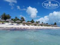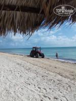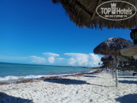 Пляж вдоль отеля длинный, песчаный, шезлонгов и зонтиков полно. По утрам полоска из водорослей, которую убирали трактором.
