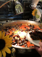 Основной ресторан также на 5. Еды много и она качественная и вкусная,места много и внутри и на свежем воздухе. Было много фруктов ( яблоки, арбуз, дыня, виноград, ананас, киви, сливы, и ещё клубника).В ресторанных Аля-карт еда отличная, приветливый и уважительный персонал. Также на обед можно пойти в итальянский ресторан. Выбор еды по меню, обслуживают официанты, тихая и спокойная обстановка. Есть бургерная, которая работает 24 часа, если есть предпочтения, то можно перекусить или полноценно там поесть.