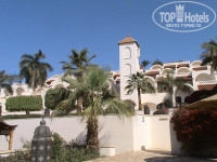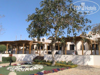 Белокаменные въездные ворота солидных размеров с арками уже при въезде на территорию отеля указывают на арабский стиль архитектуры зданий внутри. А два блокпоста охраны с тщательной проверкой авто, со специально натренированными собаками, гарантирует спокойный и безопасный отдых в этом отеле.