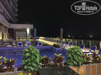 Ходили в ресторан на ужин шведский стол. Морепродукты всех видов , шашлык из ягнёнка , Утка, суши , Пиво и ещё много всего не описать. На 2 и g этажах караоке , все дорого богато...очень все современно и ново, мы в восторге. Есть басейн.