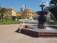 -зеленая большая территория санатория - парк, из которого был выход сразу в городской парк "Ривьера";