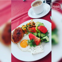 Завтрак был всегда в самом корпусе, но столы были и на улице.Обед всегда был в зоне бара у бассейна-женщина всегда готовила при нас лепешки, пиццу и т.п Повора готовили мысо, котлетки для бургеров). Так же был полдник, давали мороженное и был небольшой шведский стол с той самой пиццей, выпечкой...Ужин был тоже в основном корпусе, а так же выставляли столы на улицу.Был прекрасный вид на море!Еды хватало всем!!!