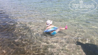Для взрослых есть понтон,спустившись по которому попадаешь в лагуну с множеством рыбок, а для деток-отличная песчаная отмель,по крайней мере не страшно, что ребенок уйдет на глубину.