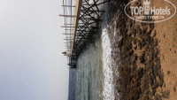 На пляже под соломенными зонтиками располагаются белые шезлонги и немного мягких пуфов. Вход в море происходит с деревянного пирса на котором есть две лестницы для спуска в воду, на нем все время сидит спасатель. По утрам работники пляжа моют шезлонги, протирают все и програбливают песок. Бар находится прямо на пляже, можно самому сходить за напитками либо попросить официанта.