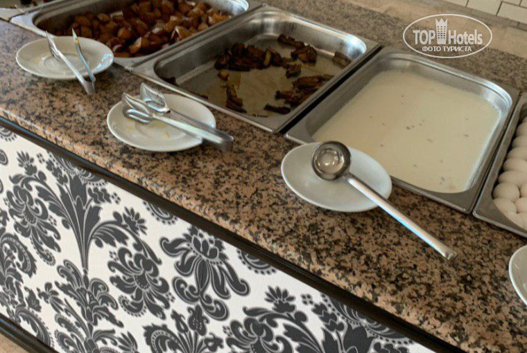 Мы долго добирались до этого отеля на трансфере. Прилетели в аэропорт Анталии в 19.40, а в отель попали только в 12 ночи. По дороге в отель нас завезли в центр для туристов (стандартное разводилово по высоким ценам) и мы сделали очень правильно, что поели там, а не стали рассчитывать на то, что в отеле чем-то сможем перекусить. Когда приехали в отель, то очень хотелось пить воды. Оказалось, что тут воду в пластиковых бутылках выдают только днем со стойки ресепшн, больше ее нигде нет и попить можно только в столовой из кулера. Нас проводили в столовую и чтобы попить мы разбавляли ледяную воду из кулера горячей водой из чайника, взяли с собой в номер воду в двух пластиковых стаканчиках - другого пути не было, чтобы восстановить водный баланс организма. Наша комната нас шокировала сразу: очень низкий потолок, убогая старая мебель (чтоб вы представляли это деревянная мебель покрашенная обычной краской, которой красят окна, например), одна прикраватная тумбочка, кресло, которому лет 50, столик с маленьким зеркалом и старым телевизором (не плоским), кровать, встроенный в стену шифоньерчик шириной до 50 см. Брезгливым людям лучше это все не видеть. Первое что я сделала - это протирала унитаз спиртовыми салфетками, салфетка после этого была черной. Вместо одеяла большое вафельное полотенце. В номере кондиционер. Двери с облупленной краской. Поддон душевой кабины ооочень грязный, вода застаивалась. Фен старый, начал дымить после 10 секунд работы. Я сушила волосы кондиционером! Пришлось поставить его в режим 30 градусов, направить лопасти вниз и стоять под ним. Из-за того, что потолки низкие, получилось так что он был прямо над головой (мой рост 162 см). Волосы просыхали, но в жару так не посушишь, конечно. Хоть мы жили в этом месте всего три дня, но за это время нам ни разу не поменяли полотенца и не вынесли мусор. Я трижды ходила на ресепшн в течение третьего дня пребывания с просьбой замены полотенцев, в итоге поздно вечером я взяла полотенца и принесла их на стойку ресепшн. Только после того как я устроила этот перфоманс, я получила чистые полотенца. Еще в отеле проблемы с водой. Если вы когда-нибудь были в турции, то видели, что у местных на крышах бочки, в которых нагревается вода от солнца, в отеле горячая вода производится также. Если посмотреть на отель с лицевой стороны, то можно увидеть, что название располагается на стене - надстрое на крыше. Так вот эта стеночка на крыше сделана как раз для того, чтобы скрыть эти бочки, чтобы не показывать окружающим масштабы того как все экономично в отеле. Открываешь кран и сливаешь воду минут 15 прежде чем вода становится горячей. Мыло не выдают, вместо него жидкое мыло, спасибо, что хоть туалетная бумага была. Пляжные полотенца не выдаются. Прямо рядом с отелем кладбище, но наш балкон выходил на сторону моря. В отеле очень плохо кормят. Тарелки ГРЯЗНЫЕ! там реально видны недомытые остатки еды, приходилось выбирать почище и протирать салфетками. Из еды: печенная картошка, печенные баклажаны, один раз застала печенные шампиньоны, яйца варенные (но если прийти на завтрак позже 8.00 - не достанутся), один раз яйца жарили, помидоры тоже заканчиваются быстро (их нарезают кружочками), огурцы, руккола, петрушка, укроп, сыр одного вида - мягкий (нарезанный кубиками), один раз застали сухофрукты (инжир, курага), фрукты скудно (только апель