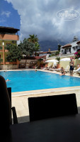 Общее представление об отеле, та самая твердая троечка. Все достаточно просто. У отеля во дворике находится бассейн с лежаками, но двигать ни в коем случаи нельзя лежаки, чтобы тебе было удобно.Подбегает служащий отеля или сам директор и говорит. что можно лежать только где стоят лежаки. В общем шаг налево или направо расстрел )) Дополнительной территории с зелеными насаждениями у отеля нет. Так если вы захотите прогуляться под тенью деревьев в жару, пожалуйста на городскую улицу. Нам очень повезло с выбор даты нахождения в Турции , все цвело и благоухало