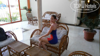 После бассейна вы попадаете фойе со столиком и плетеной мебелью - красиво, уютно.