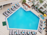 На пляж ходили пешком, идти недолго, максимум 10 минут. В бассейне мы не купались, но видели, что его чистили каждый день.