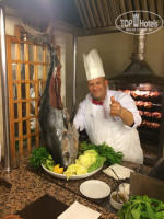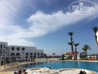 летели из Внуково в Эмфиду с АЗУР АЭР,самолет огромный на 500 мест,без задержек,леденцы,вода,соки,перекус,даже разукрасски деткам.Заселили сразу же,так как прилет после 14:00 и отель полупустой.Заплатили 16$,хотя курс 1$=3 динарам,за 7 дней пребывания 21 динар,за двоих 42,это должно равняться 14$,первые два дня было ветрено,берег весь в водорослях,убирают быстро.Отель чистый,персонал вежливый,вручила при заселении письмо и на следующий день тарелку фруктов(4 клубники,1 банан,3 яблока и 3 апельсина) принесли с письмом в номер 2430 с видом на море,окраина отеля.Территория средняя,первая линия,пляж песчаный,узкий.Кухня разнообразная,утром блинчики,круассаны,днем супы,мясо(курица,индейка,говядина)картошка,макароны,рис,овощи тушеные,ужин тоже разнообразный,рыба,мясо,гамбургер,десерты различные.Сыры,колбасы,маслины,оливки навалом.В течении около пляжа и бассейнов работает кухня,мороженное и пончики в определенное время. Аниматоров много,разные игры,веселья по кругу.В первые дни спасал обогреваемый бассейн,затем и море купались.