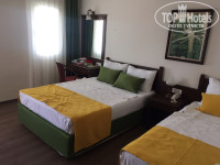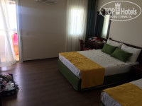 Отель небольшой и для нас с ребенком это был плюс. Все рядом – номер, ресторан, детская площадка и море. Приехали около 11 утра, заселил сразу. Дали номер сначала в соседнем здании от главного корпуса, на 3 этаже. Идти с ребенком далековато и вид на дорогу нам не понравился. Попросили поменять, сказали номера есть только в главном корпусе (он единственный с лифтом) с видом на море и доплатой 10USD в сутки (торг уместен)). Показал нам 3 номера, мы выбрали на 5 последнем этаже с видом на всю территорию отеля и морем. Фото прилагается)