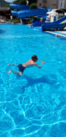 Отдыхали вдвоем с мужем.В отель приехали в 8-30 утра,сходили позавтракали и пошли оглядывать территорию отеля,посидели в баре и в 11-30 нас заселили в номер(на ресепшен сразу попросили номер потише).Номер уютный,чистый ,просторный с видом на горы.Каждый день пополняли холодильник напитками(вода и сок),полотенца по мере необходимости,в общем все нормально.Только один большой минус это кондиционер-спросили на ресепшен" почему так плохо работает"-ответили ,что включат только 20.05.,а так как в номере мы практически не были весь день,то терпимо,а ночью открывали балкон. Пляж недалеко от отеля -большой ,свободные места всегда были.У отеля 2 пляжа -первый песочный поближе ,а галечный подальше.Море было для меня прохладное,поэтому я предпочитала отдыхать около бассейна,а муж утром на море,а после обеда присоединялся ко мне.В отеле 3 бассейна - 2 открытых(один с горками) и один закрытый (после сауны нырнуть самое то).