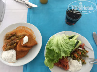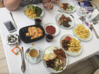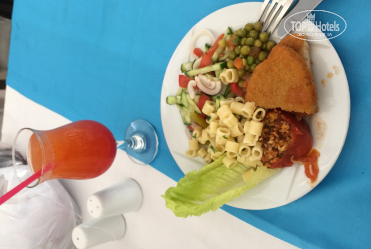 Еда салаты, овощи, сыры, маслины, овощи на гриле, всегда была какая нибудь курица , картошка ( фри, печёная , пюре, картофельные палочки во фритюре ) макароны , суп был , но не пробовали ни разу.