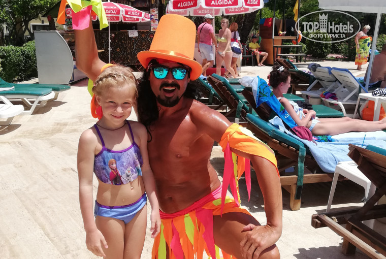 Отдыхали с мамой, ребёнком 6 лет и подругой. Прилетели в 19.00, сразу заселили. Быстро переоделись, поужинали и пошли на море, и даже окунулись, вода показалась даже теплее, чем в следующие дни. Нам достался номер с одной 2-хспальней, одной 1-спальноой и 1 двухярусной кроватями, все работало, только холодильник холодил совсем чуть, мы даже обращались на рецепш, но нам ответили, что это не морозильная камера, так должно быть. Времени свободного у нас практически не оставалось, так как анимация работала по полной, с 10.00 до 2.00. Зарядка, аквааэробика, дартс, стэп аэробика, сальса, вечером мини-диско, обязательно развлекательная программа, каждый день караоке, и ночная дискотека на пляже!! Для детей тоже тоже программа расписана по часам, можно оставить ребёнка с аниматором, и сбегать в это время на аэробику🙂. Из выпивки как всегда раке, водка, виски, ром, пиво, кокосовый ликер, бейлиз, мартини, вино(есть кислое, но бывает барбарис, очень даже ничего). Иногда в лобби баре делают молочный коктейль(если есть молоко). Питание на любой вкус, очень нравилась жареная форель, из фруктов было яблоки, апельсины, абрикосы, груши, клубника, черешня, арбузы. Небольшой совет, чтобы не стоять в очередях, приходите в ресторан минут через 40, мы приходили через час после открытия и места были и еда, и фрукты.. В общем отдыхом остались оооочень довольны, уезжать не хотелось, время пролетело не заметно. Возможно ещё сюда вернёмся, смотря какая будет цена🙂 Отель рекомендую однозначно.. Возможно недостатки и были, но у нас не было времени обращать на них внимания, Отдельное спасибо команде аниматоров, они просто асы своего дела👍👍👍👍😘