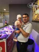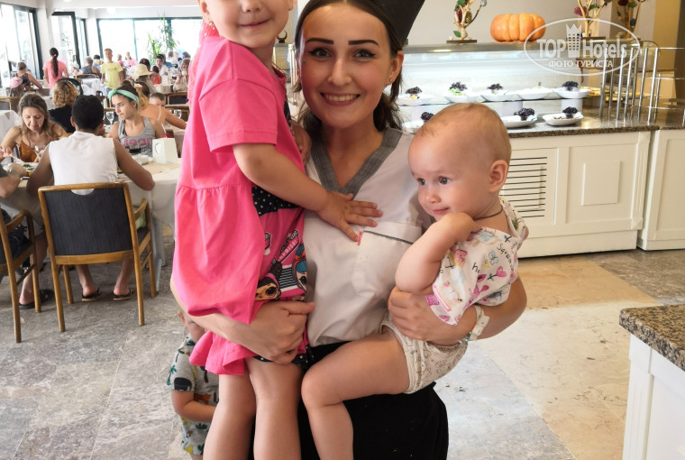 Отдельно хочется поблагодарить кухню!!! Всегда встречают с улыбкой и желанием откликнуться на любую просьбу. Есть хорошо русскоговорящий персонал. ОГРОМНОЕ СПАСИБО ГУЛЕ, ДАНЕ, БИЛАЛЮ. Они буквально нянчились с малышами чтобы взрослые СМОГЛИ положить еду в тарелку, донести горячий чай, покушать. Скучаем по Вам!) Гуля часто подходит к родителям и беседует, выслушивая пожелания к еде, следит за меню и подсказывает что сегодня можно дать деткам (без перца, соли, пряностей). Отдельно имеется стол с отварными овощами, курицей - Диет буфет. Рядом блендер. Для малышей самый раз. Ведь все едут с разными запросами (аллергики на молоко, яйцо, глютен). Можно выбрать продукты самим и при желании измельчить. Сытый ребёнок - счастлива мама!!!