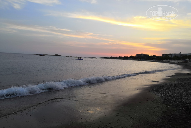 Из плюсов: отель расположен в живописной бухте, ухоженная цветущая территория, можно пользоваться территорией justiniano delux, мы так и делали. Комфортно с коляской, все предусмотрено. Море чистейшее. С детьми аккуратнее-резкий заход.