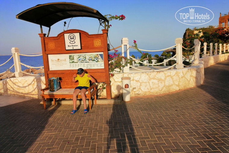 По территории отеля курсирует автобус, подвозит к морю.