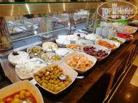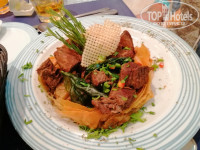Кухня очень разнообразная, всегда большой выбор мяса, птицы, рыбы, каш, овощей, йогуртов, булок, фруктов и десертов, кроме того есть ещё детское меню. Каждый вечер перед рестораном готовятся блюда на гриле. Помимо есть тематические рестораны Тайский, Индийский, Итальянский (на берегу моря, с прекрасной музыкой), Французский (жареный лосось, медальены и чизкейк отличнейшие) , Греческий (чечевичный суп, салаты, кальмары, птица и мясо - вкусно) и наш фаворит Монгольський (такой вкусный рис не ела никогда в жизни). Хочу выразить благодарность поворам и официантам за слаженную качественную работу! Бармнены оперативно двигаются, разносят и предлагают напитки по вкусу.
