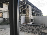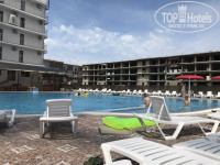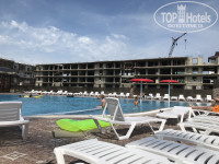 Территории нет вообще, если только бассейн, он находится за отелем, через стройку,