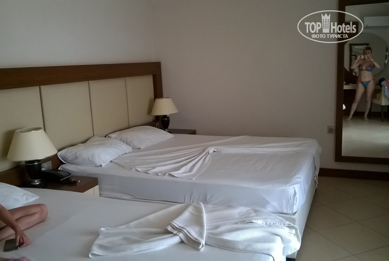 Мы отдыхали здесь неделю с детьми и друзьями, впечатления самые положительные: заселили сразу же по приезду, персонал на рецепшене русскоговорящий, да и вообще весь отель русскоговорящий, т.к. контингент отдыхающих в основном из России и Украины. Вообще за весь отдых мы лишь один раз встретили супружескую пару из Польши на пляже, кругом "руссо туристо", в основном семейные пары с детьми.