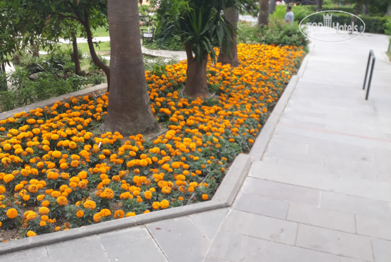 1. Зелёная территория. Удобные и красивые дорожки которые ведут к морю.