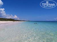 На территории растут кокосы, за 1 кук можно попросить персонал разрубить кокос, чтобы выпить. В отеле курс обмена ужасный, лучше в аэропорту обменять. 1 евро=1кук, а 1 доллар около 0,8 кук. Все везде принимается в куках, гид может принять и доллары и евро за экскурсии, но по курсу отеля. В магазинах отеля есть ВСЕ. И кофе, и сигары, и ром отличный, все дешево. Ни в каком Камагуэе нет такого ассортимента и цен, как в отеле, да и вообще делать там нечего, 2 часа ехать, разве что город осмотреть и назад с пустыми руками. В дьюти фри ром только Гавана клаб, в одном маленьком магазине цены только как в отеле, остальное дороже прилично,единственное в дьютике есть кофе по полкило 8 кук, везде же его продают по 1кг. В общем в отеле кофе 14 кук, сигары 2.5 кук вполне хорошие, но есть дороже, ром от 5 кук до 10 кук вполне приличный. Цены радуют) самые дешовые экскурсии это Камагуэй около 52 кук был и Плайя бонита около 60 кук на одного. Рыбалка есть 65 кук, барракуд ловят обычно, но они несьедобны. На плайя бонита очень красиво, глубина есть и чистая вода, плюс с катера по рифу понырять. За доп плату лобстер, точнее лангуст порезанный 10 кук, но всем не хватило его. На двоих 500 евро хватает, пару экскурсий, ром и сигары и всякие сувениры. Интернет 1 час 1 кук, карточка везде работает, где есть вайфай. На территории еще есть волейбол, футбол, бильярд, теннисный стол, бадминтон. Полотенца дают перед пляжем, главное сдать их за день до отьезда, чтобы утром был талон, ибо без талона при выезде штрф 15 евро. На пляже есть парусник, на котором можно разок бесплатно прокатиться до рифов, есть катамаран, тоже час вроде бесплатный. Велосипеды бесплатно по часу в день, можно проехать на них до деревни, где бывают сувениры, фламинго посмотреть, либо просто покататься. Есть недалеко пляж коко плайя, туда так и не доехали, но если вдвоем ехать, то такси либо повозка на двоих 20 кук туда и обратно, 1 кук за лежак на день, 10 кук за лангуста с гарниром. Во время отдыха нам помогал Мануэль на ресепшн, спасибо ему, он говорит хорошо по русски, может что-то подсказать и помочь. В общем, отличный спокойный отдых, шума и тусовок тут в принципе нет, для уединения с природой самое оно. Очень много крабов, ящерок бегает по территории, комары бывают сильно кусают, но когда безветренно, либо после дождя. Пляжи чистят каждый день от водорослей, много лежаков, полоса пляжная огромная, можно ходить вдоль к диким пляжам и вдоль других отелей. Много мелких медуз застали 1 раз утром, они не опасны, а акул тут вовсе не бывает, скаты 1 раз приплывали. Мелководье, вода быстро греется к вечеру, далеко до глубины идти, главное осторожно, в водорослях всякая живность, ежи и крабы, на них наступать не надо... А еще морские звезды и скаты бывают. От солнца главное брать крем с максималбной защитой, обгорают все в раз. Разок тут точно стоит побывать, место отличное,атмосфера теплая и уютная.