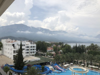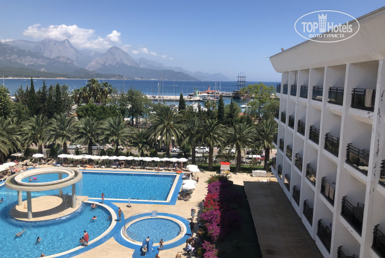 Добрый день туристы, которые хотят и собираются посетить данный отель, не рекомендую! От аэропорта ехать не далеко, это плюс, далее по порядку.Начнём с того, как нас разместили. Приехав в отель нам сразу предложили заплатить10$ за сутки, но типо акция сейчас, 30$ за вид на море на весь период отдыха, деньги не большие, мы не первый раз в Турции, до в прошлом году были в Мармарисе, проблем с номером не было, доплачивать тоже не предлагали. Решили не заморачиваться, взять стандарт, но ужас был потом. Пришли в номер, вместо 1 двуспальной кровати, или 2 которые можно сдвинуть было 3 односпальных,ну ладно думаем, убрать третью можно. Номер был не убран к слову СОВСЕМ. В плоть до того, что постельное белье было от предыдущих жильцов, все мятое и в пятнах. Покрывала, которые должны лежать на кроватях были разбросаны по номеру, сейф не работал, на полу мусор( какие-то бумажки, фантики) Ванная комната это прям треш- данные номер предполагается для инвалида, так как там не было загорождения в душевой кабине, просто прикрыта железная конструкция только шторой, которая так же была в пятнах. Дальше веселее, в этом номере дверь в ванную открывалась и упиралась в штору душа и середину унитаза, как людям ходить? Были от прежних жильцов и бутылочки из под шампуня. А вид из окна,ох, на крышу из щебёнки, перекрыт так же вид на корпус анекс. В общем не понимаю как в 5* отеле могут такие номера быть. Итог, заплатили 30$ переселили в другой номер. Претензий по нему нет. И вид из номера красивый и чисто все было, вся техника работала. Расположение отеля не плохое, до моря мин 4. Отелю принадлежит 2 пляжа, 1- песочно-галечный грязноватый, но эта вина и туристов, которые все кидают с яхт и кораблей и тех, кто не качественно убирает( он как раз мин 4 идти); 2- мин 4-5 примерно идти, там только галька достаточно крупная,нам о нем рассказали в последний день, хотя спрашивали в первый день, где и какие пляжи есть, по питанию нет совершенно никаких претензий. Все вкусно, мяса было достаточно,и курица и рыба и говядина, овощей и зелени так же достаточно, фруктов не много по разнообразию. По обслуживанию- «уборка» каждый день, но в чем она заключается- выносили мусорный пакет, добавляли шампуни и туалетную бумагу, пепельницу меняли, воду 1,5л бутылку добавляли,на этом все. Ни разу не пылесосили за время отдыха, полотенца поменяли через 5 дней, о том, что их надо сбрасывать на пол,чтобы поменяли,мы знаем, но их просто вешали назад на держатели. Белье не меняли, но не скажу, что это было прям необходимостью, так как оно при заселении было чистое. Далее о анимации, она на русском языке. Ведут анимацию и для детей (танцы и дневное время зарядка)и для взрослых ( водное поло и зарядка днём, вечером конкурсы и немного дискотеки). Ребята все молодцы, всех зазывают поучаствовать. Претензий к ним нет. Спасибо! По обслуживаю официантов и концепции отеля видимо-если вы хотите посидеть с едой после ужина, ну например вы только приехали или пришли поздно, вы ДОЛЖНЫ сидеть именно в ресторане, так как на террасе, где все во время обеда и ужина накрывают столы, то есть это официальное место, чтобы поесть, а не просто нам там захотелось поесть, кушать запрещают,говорят, или давайте тарелки или идите в ресторан. Даже если у вас тарелочка с десертом. В прошлом году никто из персонала другого отеля ни слова не говорил,в этом отеле к сожал