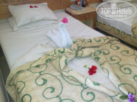 ЗАСЕЛЕНИЕ и НОМЕР: Прибыли в отель около 9 утра....заселились почти в 13.00 И это был единственный "косяк" за весь отдых. Всё ничего, ребенок сразу в бассик полез, до обеда он там и плавал; мне тож как-то "фиолетово", а вот маму немного напрягала неизвестность. Мест не было ,т.к. был массовый выезд. А каждые полчаса ходила на ресепшен к Тамиру - улыбалась и просила))) На ресепшене все молодцы, все приветливы!!! Номер дали одним из первых, но в "русском" корпусе (№№200-340) наш был 306, в самом конце отеля. Попросила поменять, т.к многое не работало, очень маленький номер с маленькими кроватями(сына ночью падал((( )...и хотели 2-й этаж, но заменили только на след день.При чем совершенно бесплатно на 3421-я сходила проверила номер - просторный, с видом на бассейн.Недостатки номера - дверцы шкафа пару раз падали!!,рядом дискотека и ооочччеееннньььь МНОГО комаров - ничего не спасало - ребенка СЪЕЛИ!!Но это не смертельно - мы же на отдыхе - кругом, всё цетёт, всё зеленой, солнечное!! Убирали каждый день, белье и полотенце тоже меняли каждый день. Крутили всяких зверюшек,посыпали цветами кровати, при чем чаевые оставляли раза 3...мы просто много улыбались и скрашивали как дела)))Балкончик нашего номера был, можно сказать, на "дороге" "дискотека-лобби-бар" весело было наблюдать за снующими туристами)))Кстати, кто хочет у бассика, рекомендую корпуса 36.., 37.., 38.. В 3623 и 3613 только сделали ремонт))
