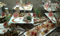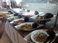 Питание - однозначно порадовало. В ресторане - шведский стол с огромным выбором блюд русской кухни (из картофеля, макарон, овощей, риса, рыбы, яиц, много "нашей" зелени, салатов и т.д.). Кроме того, можно было на выбор кушать овощи-гриль, мясные блюда, самому готовить тосты, различные хлопья с и без йогуртов, выбирать более острые блюда и многое другое. То же - в "летнем" ресторане, который начинал работать в обед и был открыт в те часы, когда закрывался на перерыв основной, и в который можно было заходить в пляжном виде.
