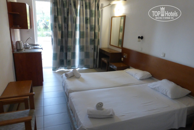 Самый ближайший пляж Ладико и Энтони Куин, правда где-то минут 20 пешком. Но зато очень красивые виды по пути. Примерно также до центрального пляжа Фалираки. До магазина пешком минут 10, на машине вообще ни о чем. Мини-магазин есть и в самом отеле, здесь можно купить сухие завтраки, перекусы, молоко, воду, зубную пасту, вещи первой необходимости.