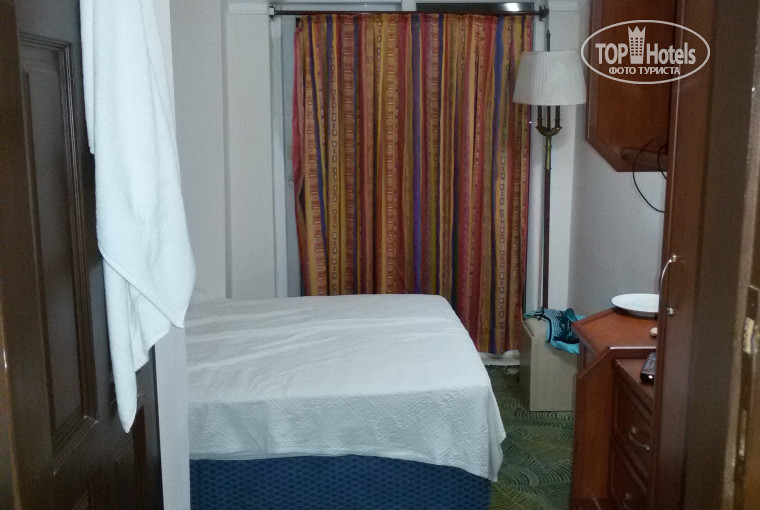 Отдыхала с друзьями в этом отеле 8 дней. Отель очень небольшой. Один корпус, номеров немного. Все отдыхающие друг друга на лицо знали. Номер дали на 4 этаже - 405. На фото последний этаж с треугольной крышей на балконе справа. Одноместный номер очень крошечный. Впервые такой номер увидела. Восьмой раз в Кемере. Но мне собственно хватало места - я была одна в номере. Убирали только мусор, иногда просила не заходить даже. Полотенца не меняли ни разу, но если бы попросила у девочек, думаю не отказали бы.